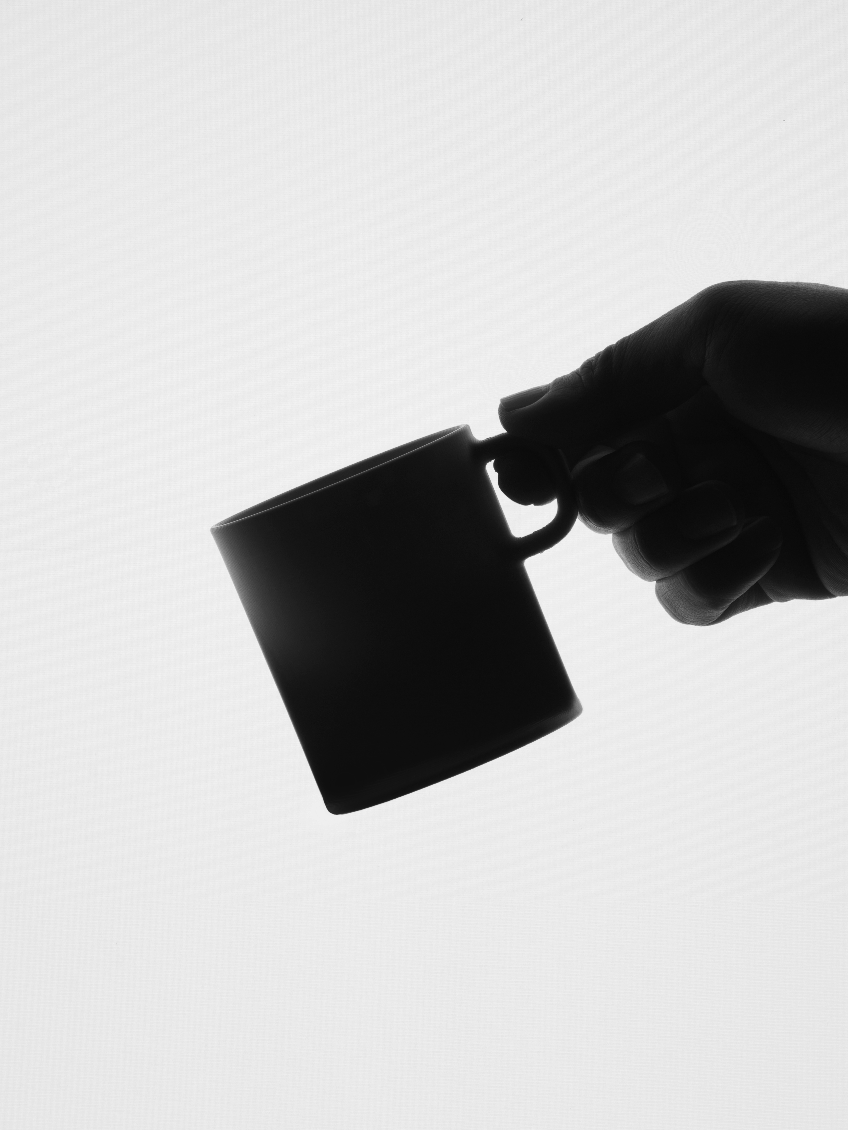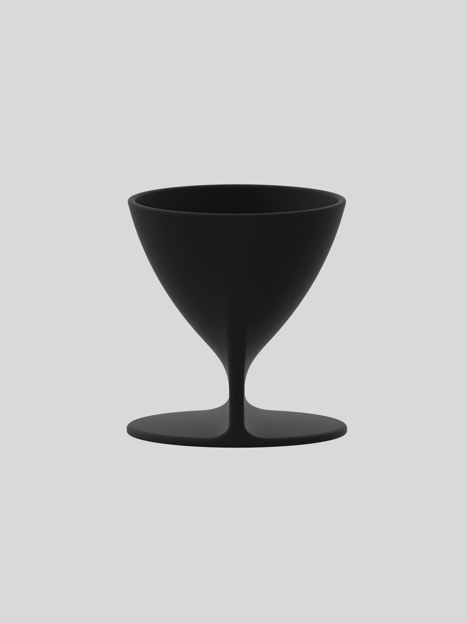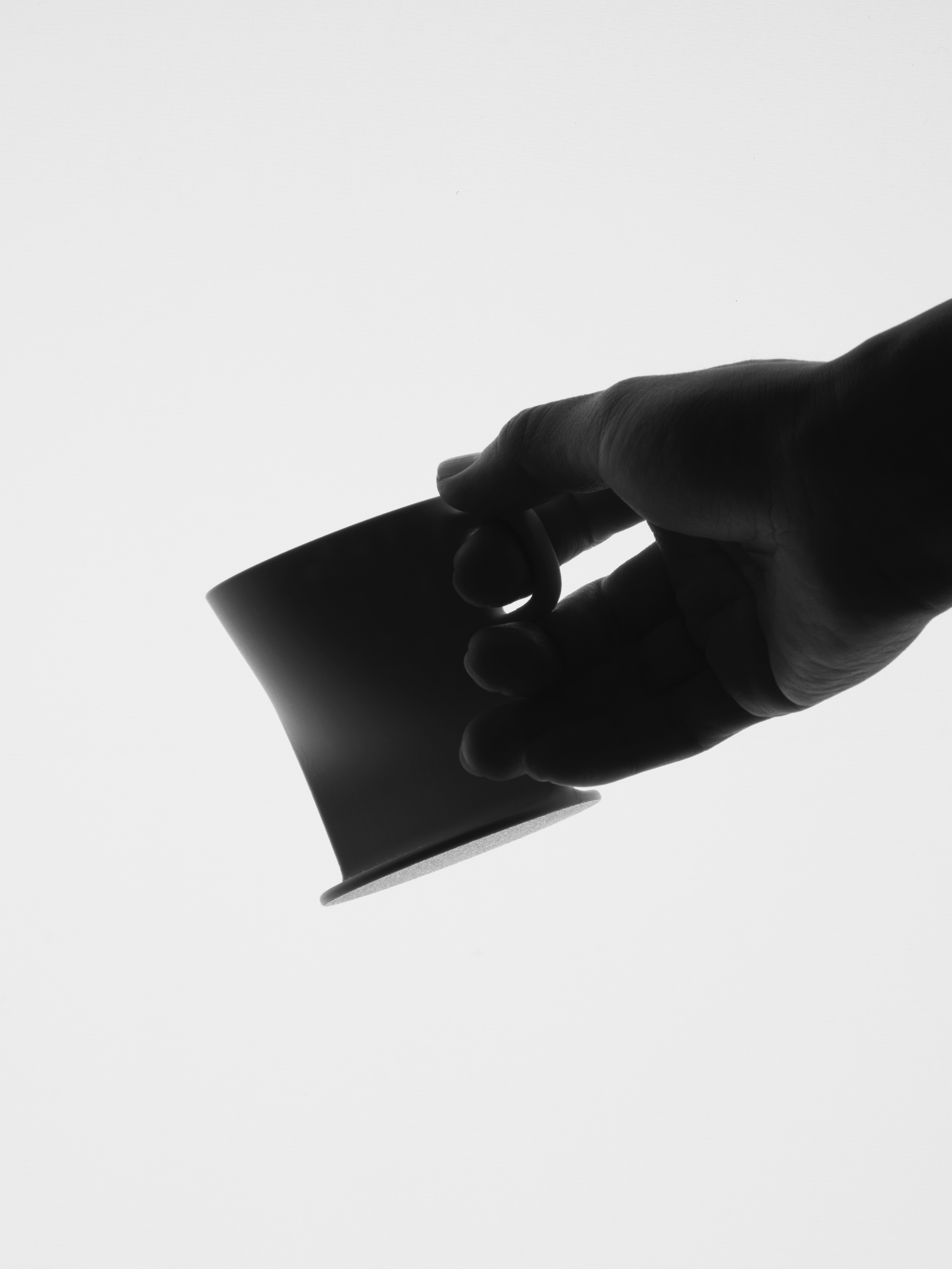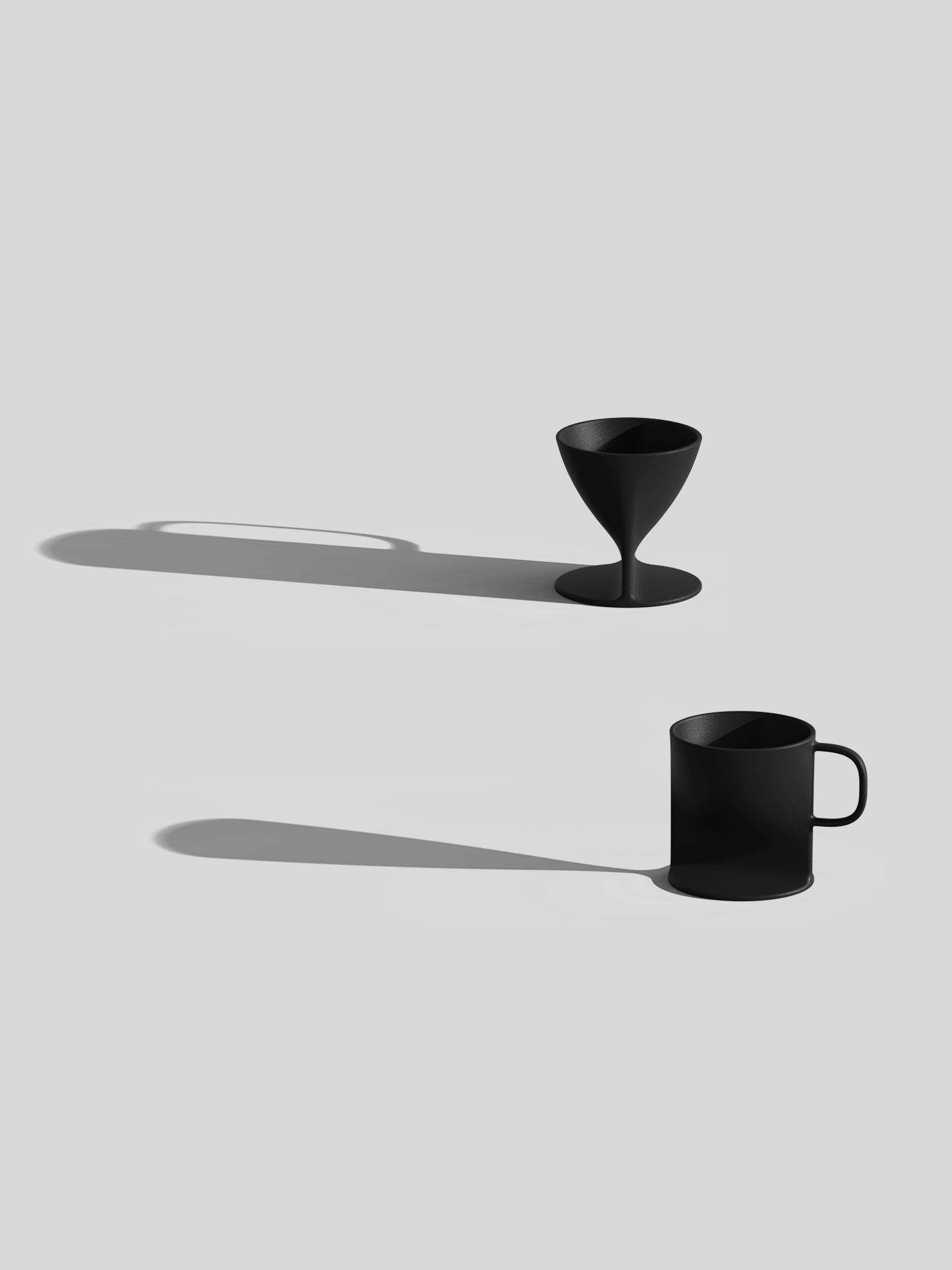 From one viewpoint, the proportions and outline of a wine glass are read first. As the viewing angle changes, the image of a handled mug comes into view. While the physical form remains singular, its visual identity does not settle into one reading.